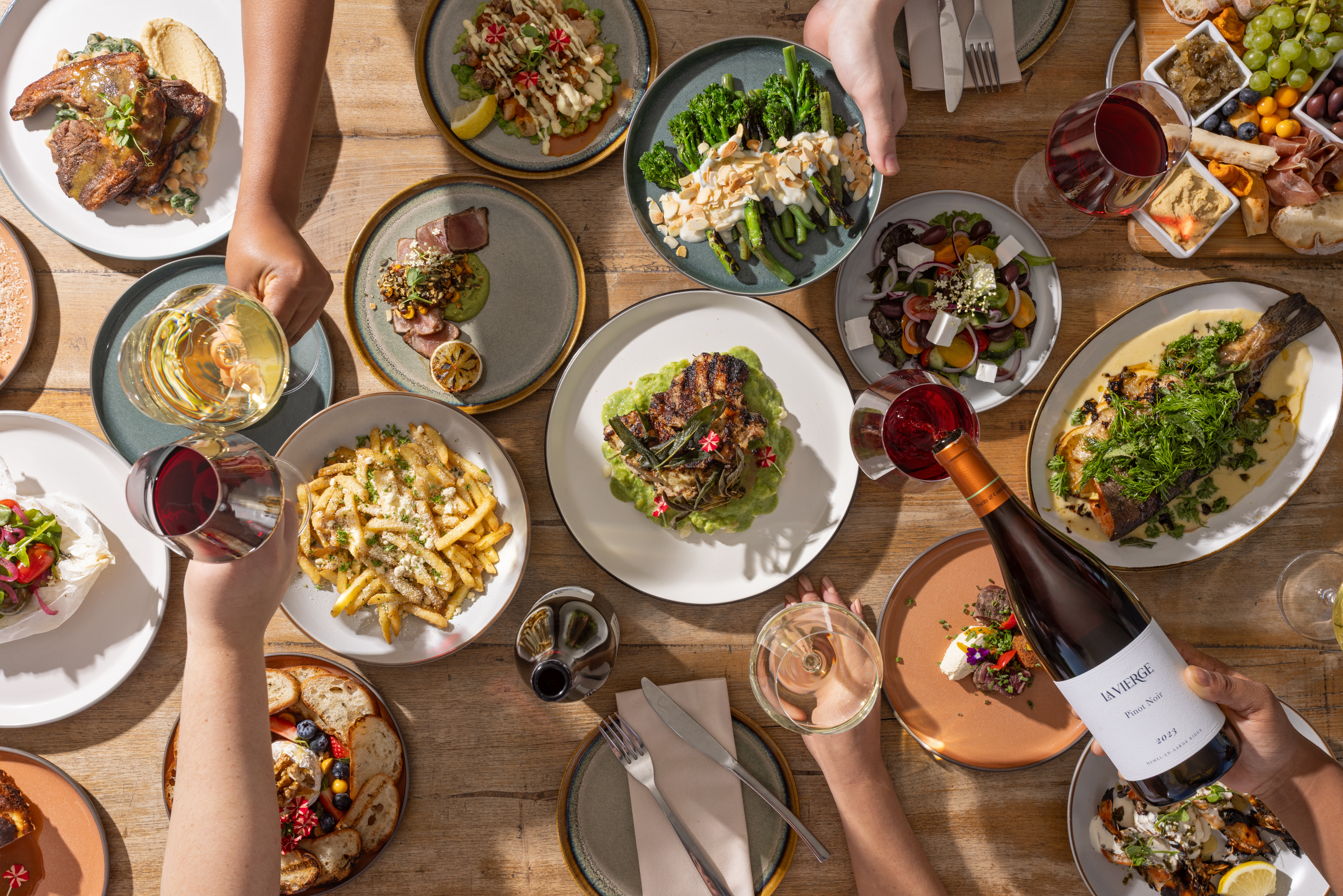 La Vierge offers two distinct locations to enjoy: the Tasting room and Restaurant in the Hemel-en-Aarde valley and the farm on the Hemel-en-Aarde Ridge. Each has its own character, yet both reflect the same family story and connection to the land.
