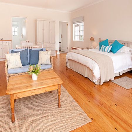 A family unit with a spacious open plan bedroom/living area as well as a separate, smaller bedroom with 2 single beds. Full bathroom and private patio and braai.